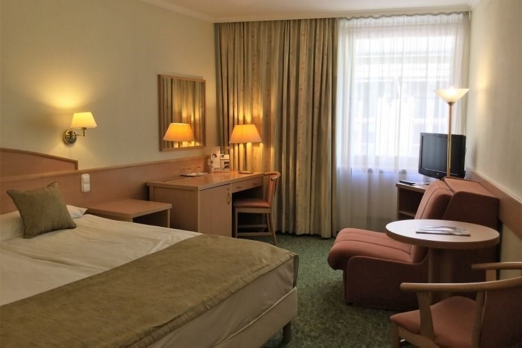 Jednolůžkový pokoj Standard, vlastní soc. zařízení (sprcha, WC, fén), SAT TV, telefon, klimatizace, lednička, Wi-Fi (zdarma), zvukově izolovaná okna.Dvoulůžkový pokoj Standard, manželská postel nebo oddělená lůžka, vlastní soc. zařízení (vana nebo sprcha, WC, fén), SAT TV, telefon, klimatizace, lednička, Wi-Fi (zdarma), zvukově izolovaná okna.Třílůžkový pokoj Standard, manželská postel nebo oddělená lůžka, vlastní soc. zařízení (sprcha, WC, fén), SAT TV, telefon, klimatizace, lednička, Wi-Fi (zdarma), zvukově izolovaná okna.Dvoulůžkový pokoj Superior, manželská postel, vlastní soc. zařízení (sprcha, WC, fén), set na přípravu kávy a čaje, SAT TV, trezor, telefon, klimatizace, lednička, Wi-Fi (zdarma), zvukově izolovaná okna.Apartmán Junior, obývací pokoj s rozkládací pohovkou (možnost přistýlky), ložnice (manželská postel), vlastní soc. zařízení (sprcha, WC, fén), SAT TV, telefon, klimatizace, lednička, Wi-Fi (zdarma), zvukově izolovaná okna.