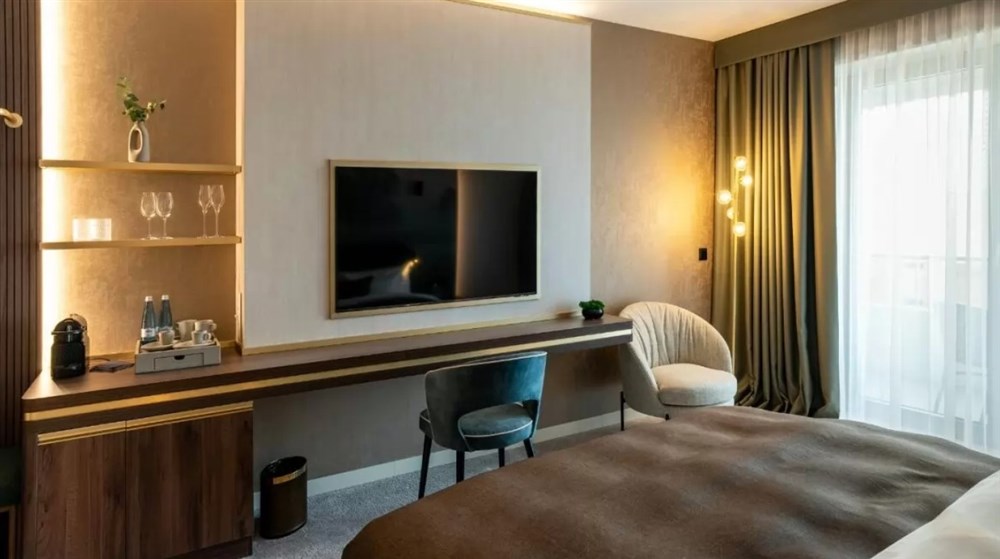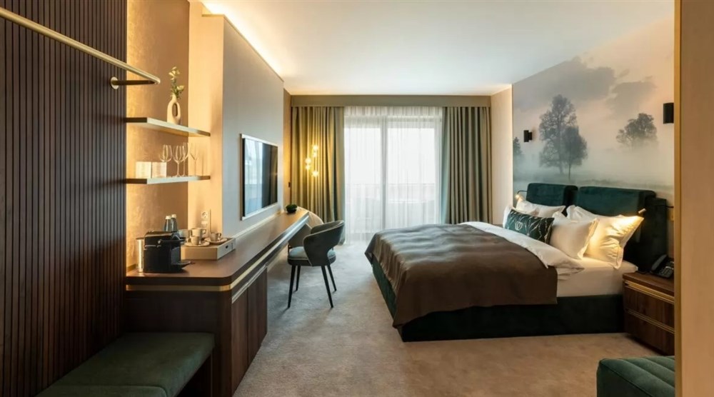 Prémiové dvoulůžkové pokoje Urban/Nature - s výhledem na malé městečko a malebnou krajinu na svahu, nebo klidnou atmosféru chráněné vřesovištní krajiny.▶ Dvoulůžkový pokoj Premium Nature 30 - 32 m2, manželská postel (King size Bed 180 x 200 cm) nebo dvě oddělená lůžka (2 x 90 x 200 cm), vlastní koupelna (sprcha, WC, fén, základníluxusní kosmetika, župany, hotelové pantofle), LCD TV, telefon, kávovar, minibar, trezor na notebook, klimatizace, balkón.▶ Dvoulůžkový pokoj Premium Urban 30 - 32 m2, manželská postel (King size Bed 180 x 200 cm) nebo dvě oddělená lůžka (2 x 90 x 200 cm), vlastní koupelna (sprcha, WC, fén, základní luxusní kosmetika, župany, hotelové pantofle), LCD TV, telefon, kávovar, minibar, trezor na notebook, klimatizace, balkón. (Výhled na městečko Hevíz)▶ Čtyřlůžkový rodinný pokoj Premium propojený dvoulůžkový pokoj Nature a Urban. 60 - 64 m2, 2x manželská postel (King size Bed 180 x 200 cm), 2x vlastní koupelna (sprcha, WC, fén, základní luxusní kosmetika, župany, hotelové pantofle), 2x LCD TV, telefon, kávovar, minibar, trezor na notebook, klimatizace, 2x balkón.▶ Dvoulůžkový rohový apartmán Urban/Nature 52 - 67 m2, manželská postel (King size Bed 180 x 200 cm nebo 200 x 200 cm) nebo dvě oddělená lůžka (2 x 100 x 220 cm), obývací pokoj s možností rozkládací pohovky (160 x 200 cm), vlastní koupelna (sprcha, WC, fén, základní luxusní kosmetika, župany, hotelové pantofle), LCD TV, telefon, kávovar, minibar, trezor na notebook, klimatizace, balkón.▶ Rodinné relaxační studio 40 - 50 m2, manželská postel (King size Bed 180 x 200 cm nebo 200 x 200 cm), rozkládací pohovky (160 x 200 cm), vlastní koupelna (sprcha nebo vana, WC, fén, základní luxusní kosmetika, župany, hotelové pantofle), LCD TV, telefon, kávovar, minibar, trezor na notebook, klimatizace, terasa. (Výhled na městečko Hevíz)▶ Rodinné relaxační studio s vířivkou 45 - 50 m2, manželská postel (King size Bed 180 x 200 cm nebo 200 x 200 cm), rozkládací pohovky (160 x 200 cm), vlastní koupelna (sprcha nebo vana, WC, dvojité umyvadlo, fén, základní luxusní kosmetika, župany, hotelové pantofle), LCD TV, telefon, kávovar, minibar, trezor na notebook, klimatizace, soukromá vířivka na pokoji, terasa.Penthouse apartmány v hotelu ztělesňují luxus v té nejkrásnější podobě, kde se dokonale snoubí prostorné pokoje, moderní design a úchvatné výhledy. Každý apartmán nabízí soukromou terasu s nádherným panoramatickým výhledem na malebné kopce Hévízu nebo klidné městečko. Krásně navržené zelené plochy plné květin na terase vytvářejí klidnou, intimní atmosféru. Prostorné obývací prostory, několik ložnic a koupelny s vanami a sprchami zajišťují nejvyšší úroveň pohodlí. Ideální pro rodiny nebo skupiny přátel, kteří hledají nejen čistou relaxaci, ale také nezapomenutelné okamžiky.▶ Majestic Penthouse Suite Nejluxusnější apartmá v Hévízu představuje vrchol elegance a prémiového komfortu.Prostorné interiéry a soukromá střešní terasa o rozloze 113 m² nabízejí jedinečný zážitek s dechberoucím výhledem na chráněnou mokřadní oblast a okolní hory. Apartmá je ideální volbou pro všechny, kteří chtějí spojit nerušený odpočinek s exkluzivními službami a jedinečným prostorem.