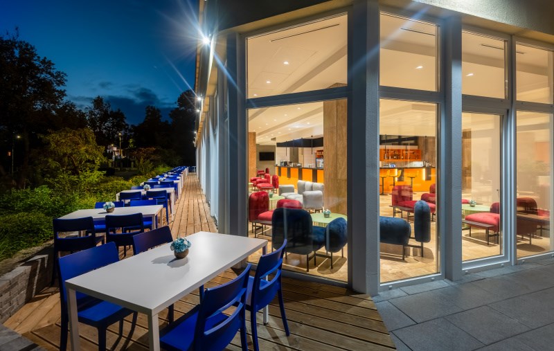 Recepce, restaurace, bar, wellness centrum (vnitřní a venkovní bazény, vířivky, dětský bazén, sauny (Finská, Infra, aroma), parní lázeň, solná místnost, venkovní zážitkový bazén (sezónní), terasa, lehátka, bezbariérový přístup, Wi-Fi, parkování.