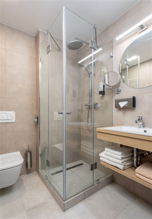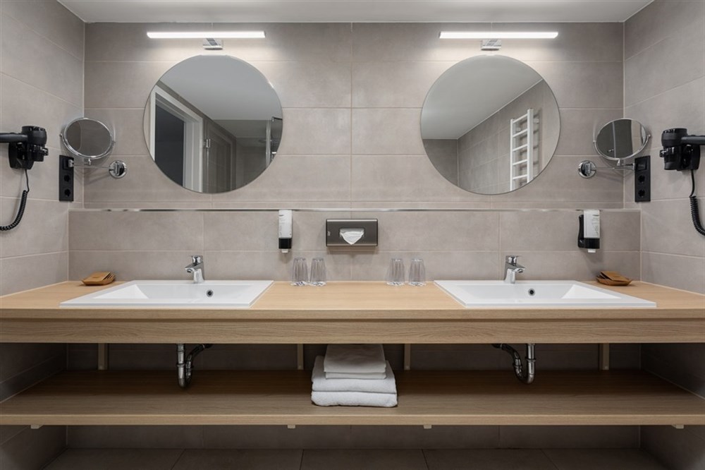 Dvoulůžkové pokoje Klasic 17 m2, lůžka 2x 80x200, koupelna (sprcha, WC, fén, župan), LED TV, telefon, trezor, minibar, klimatizace, Wi-Fi. Pokoje se nacházejí ve třetím patře a mají výhled na vnitřní terasu nebo garáže.