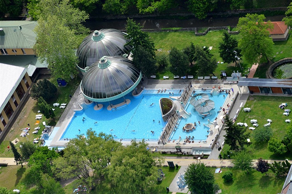 Lázeňský areál, rozkládající se v upraveném městském parku na ploše 4 hektarů, nabízí otevřené i kryté bazény s termální vodou o teplotě 29–37 °C, které jsou vhodné pro léčbu chronických onemocnění pohybového ústrojí, revmatismu, chronických gynekologických zánětů a neplodnosti. Komplex zahrnuje termální bazén se dvěma druhy termální vody, vodopád, dětské brouzdaliště a bazén, plavecký bazén, velký bazén, zážitkový bazén pro dospělé a bazén s léčivou vodou. Pitná kúra je vhodná pro poruchy a katary zažívacího a střevního systému.