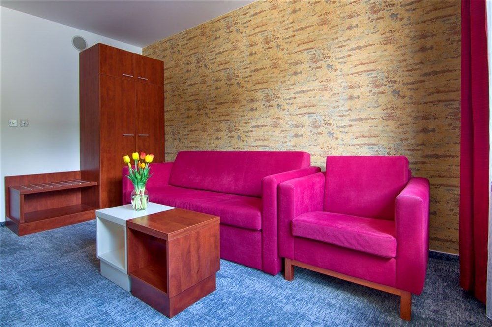 ▶ HLAVNÍ BUDOVA****:Dvoulůžkový pokoj bez balkónu: manželská postel nebo dvě oddělená lůžka, koupelna se sprchou, WC, fén, minibar, TV, trezor.Dvoulůžkový pokoj s balkónem: manželská postel nebo dvě oddělená lůžka, koupelna se sprchou, WC, fén, minibar, TV, trezor, balkón.Dvoulůžkové suite: manželská postel, koupelna se sprchou, WC, fén, minibar, minilednička, kávový a čajový set, TV, trezor, obývací pokoj s gaučem (možnost přistýlky), může se vyžádat i handicap suite, většina pokojů s balkónem.Třílůžkové suite: manželská postel a 1 jednolůžková postel, koupelna se sprchou, WC, fén, minibar, minilednička, kávový a čajový set, TV, trezor, obývací pokoj s gaučem (možnost přistýlky), balkón.▶ DEPANDANCE***:Dvoulůžkový pokoj bez balkónu: manželská postel nebo dvě oddělená lůžka, koupelna se sprchou, WC, fén, minibar, TV, trezor.Dvoulůžkový pokoj s balkónem: manželská postel nebo dvě oddělená lůžka, koupelna se sprchou, WC, fén, minibar, TV, trezor, balkón.