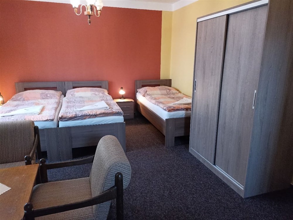 Jednolůžkové až třílůžkové pokoje, jednodušší zařízení, vlastní koupelna (WC, sprchový kout), TV, Wi-Fi (zdarma).