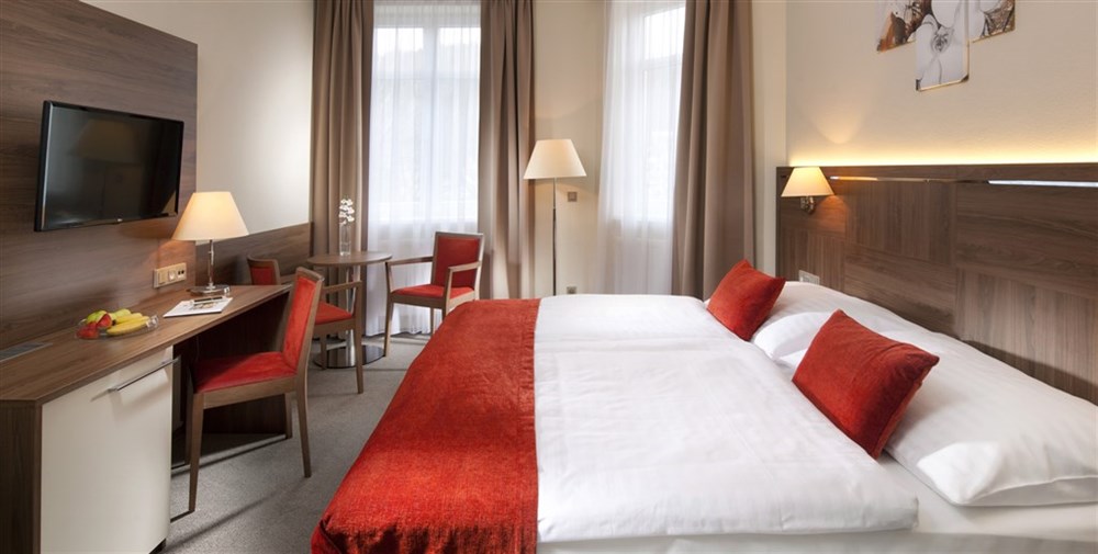 1-2lůžkové pokoje, v zadní části, vlastní soc. zařízení (sprcha, WC, fén), TV, Wi-Fi (zdarma), telefon, minibar.1-2lůžkové pokoje Komfort, v čelní nebo boční části, vlastní soc. zařízení (sprcha, WC, fén), TV, Wi-Fi (zdarma), telefon, minibar.1lůžkové pokoje Komfort Plus, vlastní soc. zařízení (vana, WC, fén), TV, Wi-Fi (zdarma), telefon, minibar, balkón.
