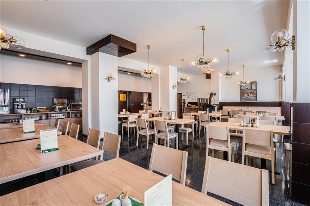 snídaně (bufet). V nabídce je široký sortiment uzenin, sýrů, slaného i sladkého pečiva, vaječných pokrmů, ovoce, zeleniny, cereálií, mléčných výrobků, džusů a teplých nápojů. Možnost dokoupení večeří (formou bufetu nebo tříchodového servírovaného menu podle obsazenosti hotelu).